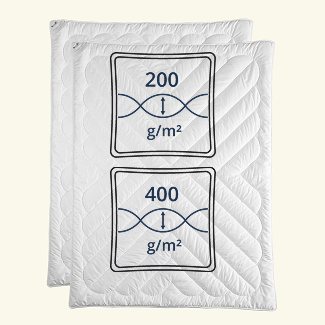 Zestaw 2 kołder, które można ze sobą połączyć troczkami, tworząc jedną kołdrę zimową.